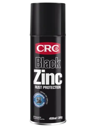 CRC Black Zinc is zinc-enriched for corrosion protection - High levels of anti-corrosive zinc complexes in the dried film, embedded in a protective enamel coating. Excellent adhesive qualities – Forms a tough coat for long-term protection. Heat Resistance – Up to 120°C. Corrosion protection – Corrosion Protection Factor 36 (up to 3 years before recoating is necessary, depending on conditions). Fast drying – Touch dry in 20 minutes, recoat within 30 minutes, full cure in 24 hours. Easy re-application over existing film and/or clean surfaces – For ongoing protection. Single coat – No overcoating required. Does not contain CFCs or methylene chloride. MPI Approved C23 (All Animal Products Except Dairy).