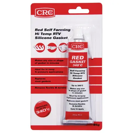 CRC Red RTV Gasket 340 is formulated for heavy duty, high temperature applications with an intermittent service temperature of up to 340ºC.CRC Red RTV Gasket 340 is a self-forming room temperature vulcanising Silicone that replaces almost any cut gasket, felt, cork, paper, asbestos and rubber gaskets. No gasket sealers are required – the pure silicone rubber forms to any size and shape quickly.CRC Red RTV Gasket 340 resists migrating caused by thermal cycles, cracking, shrinking and vibration. It is ideal for high temperature, high pressure applications, it will remain flexible and durable.CRC Red RTV Gasket 340 is NOT recommended for use on copper and brass. Do not use as a head gasket, not suitable for stove pipes or in fireplaces.