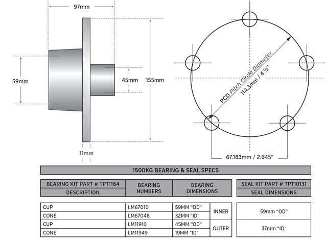 Fits 1000kg to 1500kg Non Braked Duratorques & Beam Axles